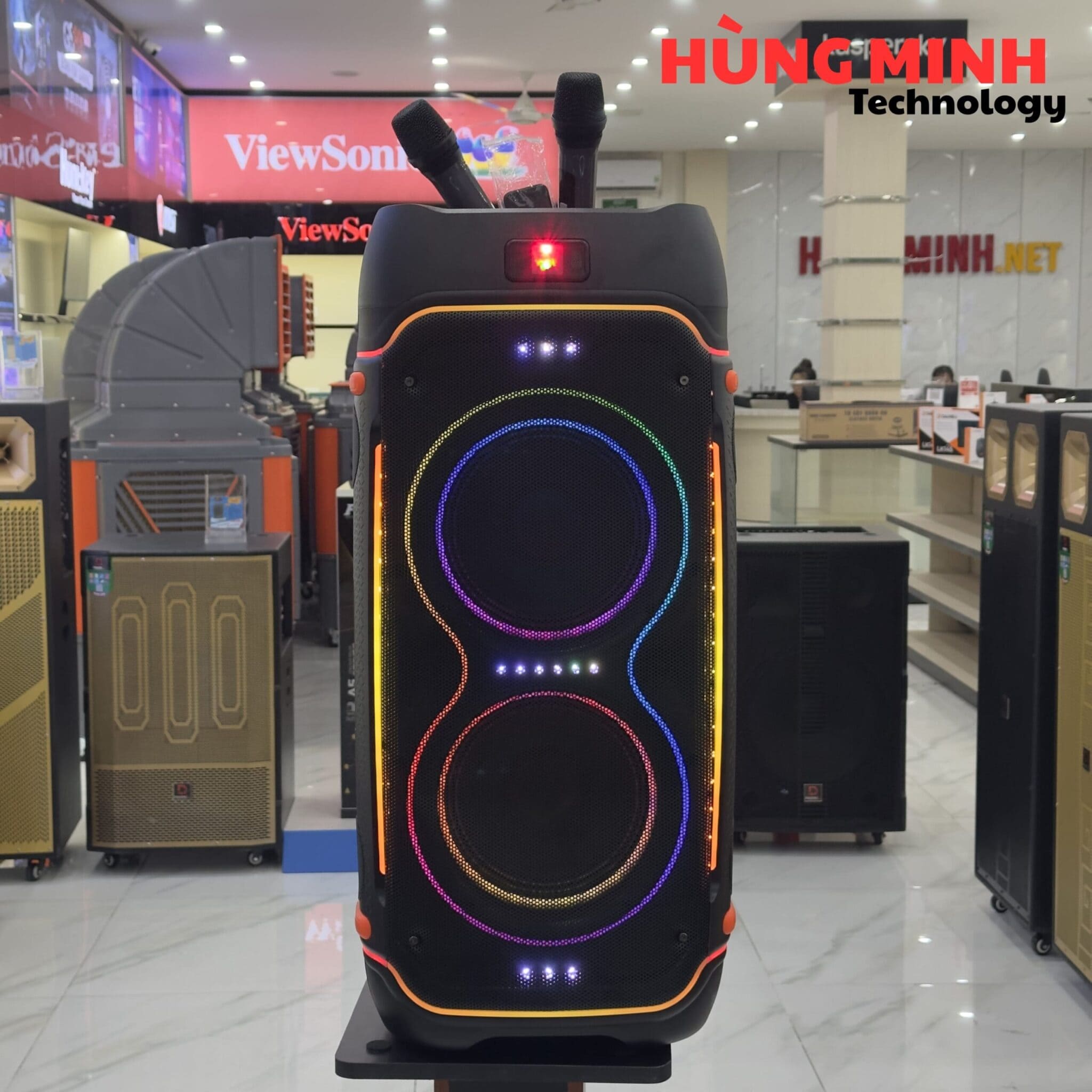 • Kết nối: USB, TF, Bluetooth, TWS, remote, 2 mic không dây