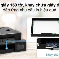 Khay nạp giấy in chứa được 150 tờ, khay chứa giấy đã in 50 tờ