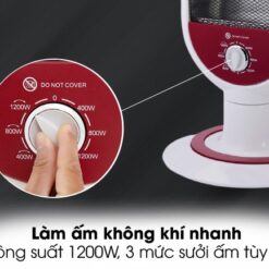 - Góc quay 45 độ với công suất 1200 W làm ấm hiệu quả không gian rộng.